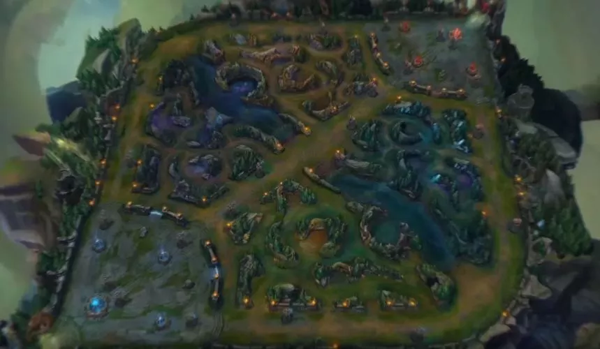 在5V5的對戰地圖中,遊戲有三條推進路線。若是新手玩家,一般建議選擇有隊友同行的路線,逐步推進,進而摧毀敵方的防禦塔。在敵方據點深處,有它們的主基地,摧毀敵方的主基地即取得該場賽事的勝利。